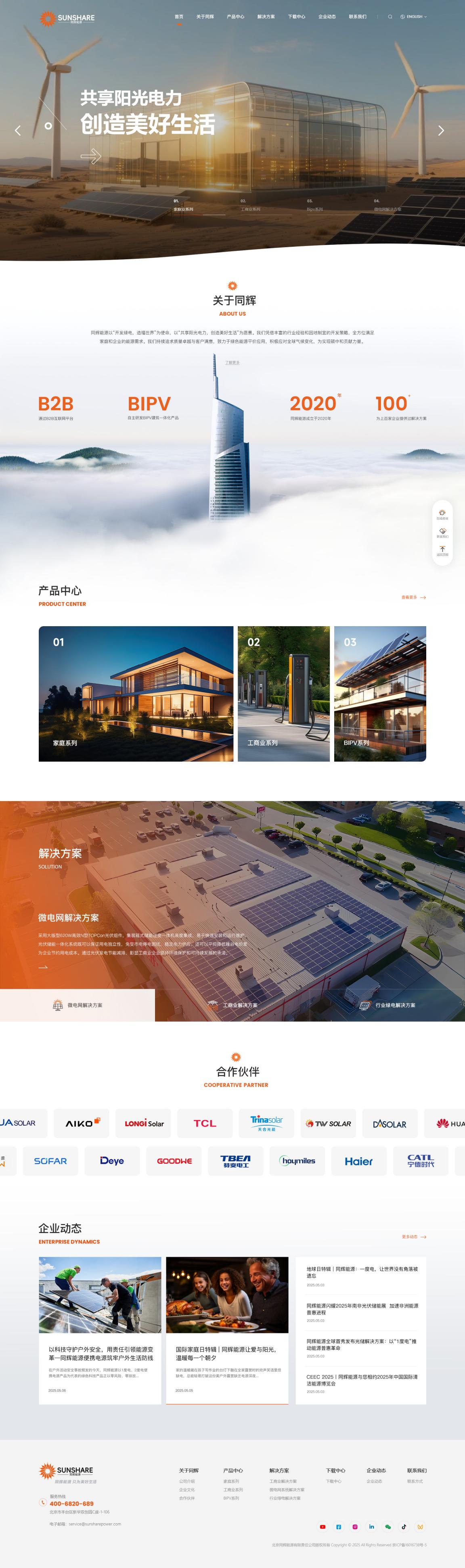 同輝以“開發綠電,造福世界”為使命,以“共享陽光電力,創造美好生活”為愿景。我們憑借豐富的行業經驗和因地制宜的開發策略,全方位滿足家庭和企業的能源需求。我們持續追求質量卓越與客戶滿意,致力于綠色能源平價應用,積極應對全球氣候變化,為實現碳中和貢獻力量。