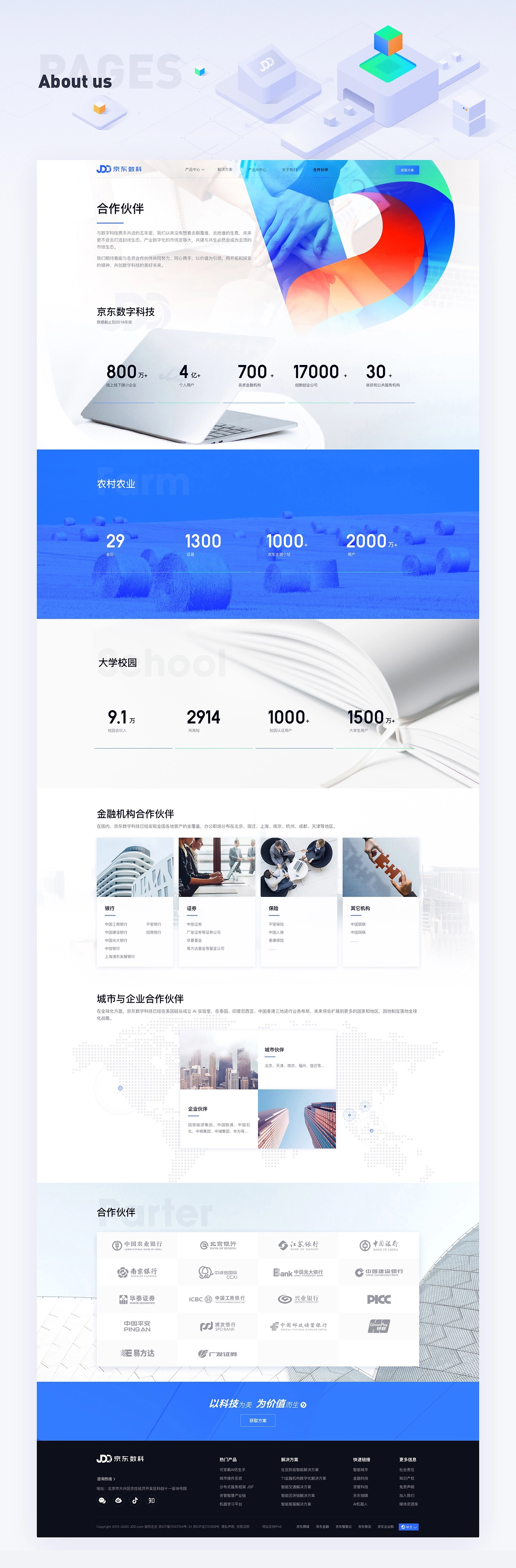 京東數字科技集團是一家以AI驅動產業(yè)數字化的新型科技公司,感恩選擇,感謝信賴,有機會能夠參與設計項目, 定位 設計一款“有溫度的、科技感官網”。基于這個理念,在腦海中摒棄了傳統的深色科技感網站的風格,決定使用白色作為背景色,在以logo藍為基調的情況下,豐富頁面的色彩,使得網頁整體給人一種時尚、輕快、明亮而又絢麗的感覺。 感謝京東市場推廣部合作伙伴的支持和幫助!