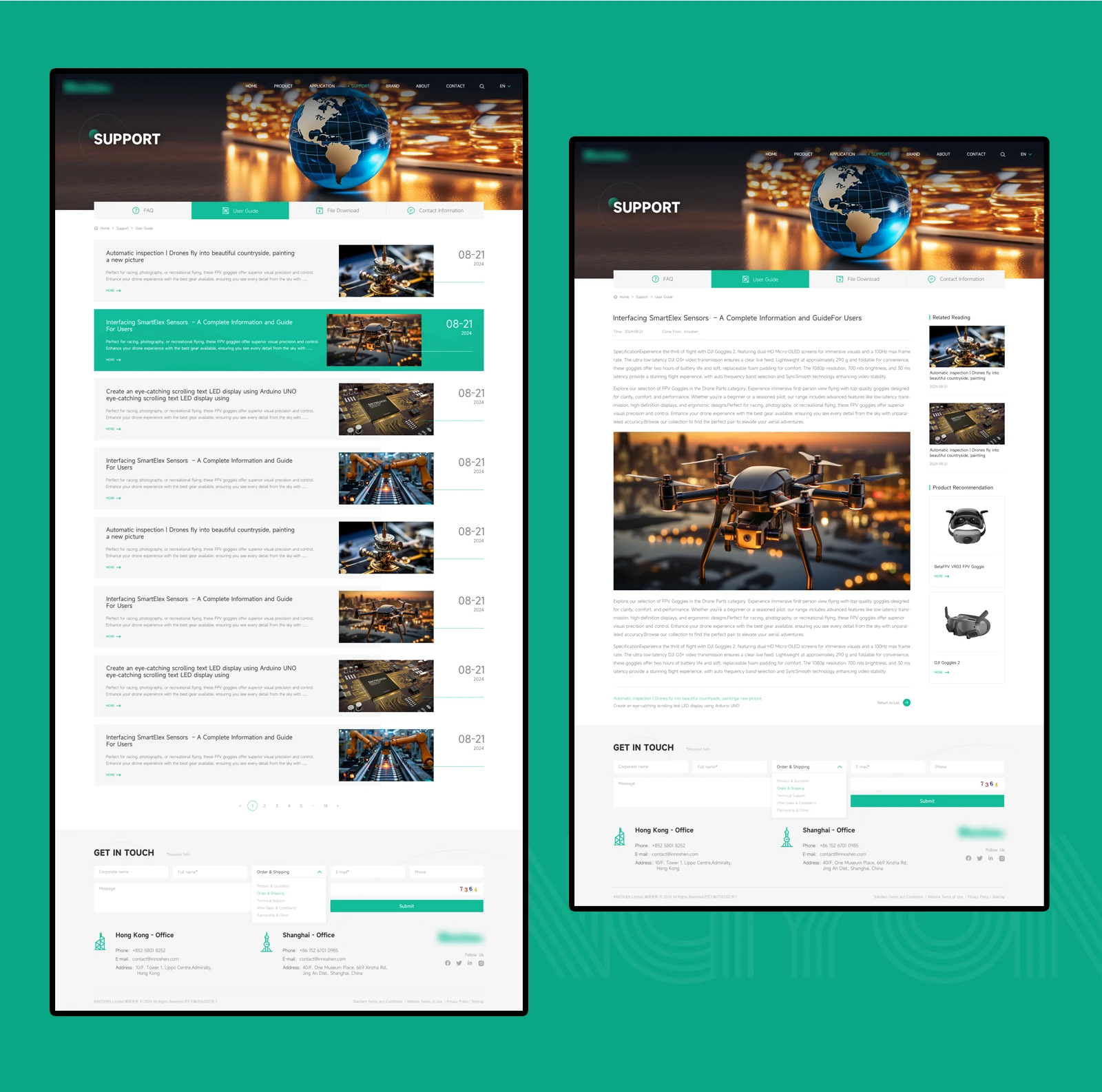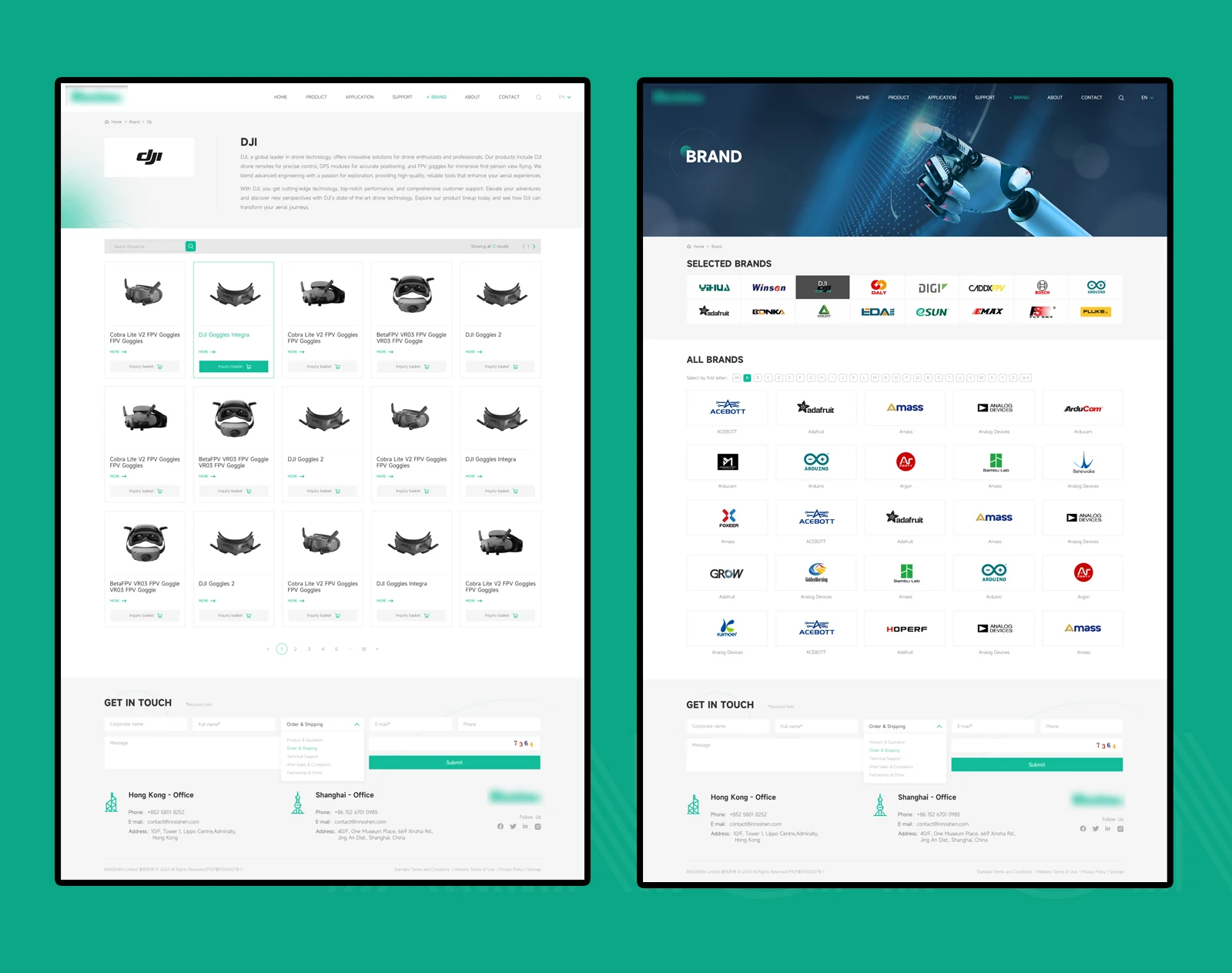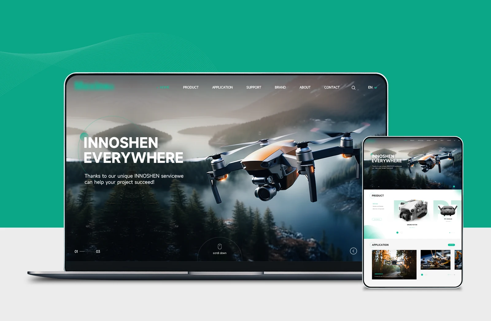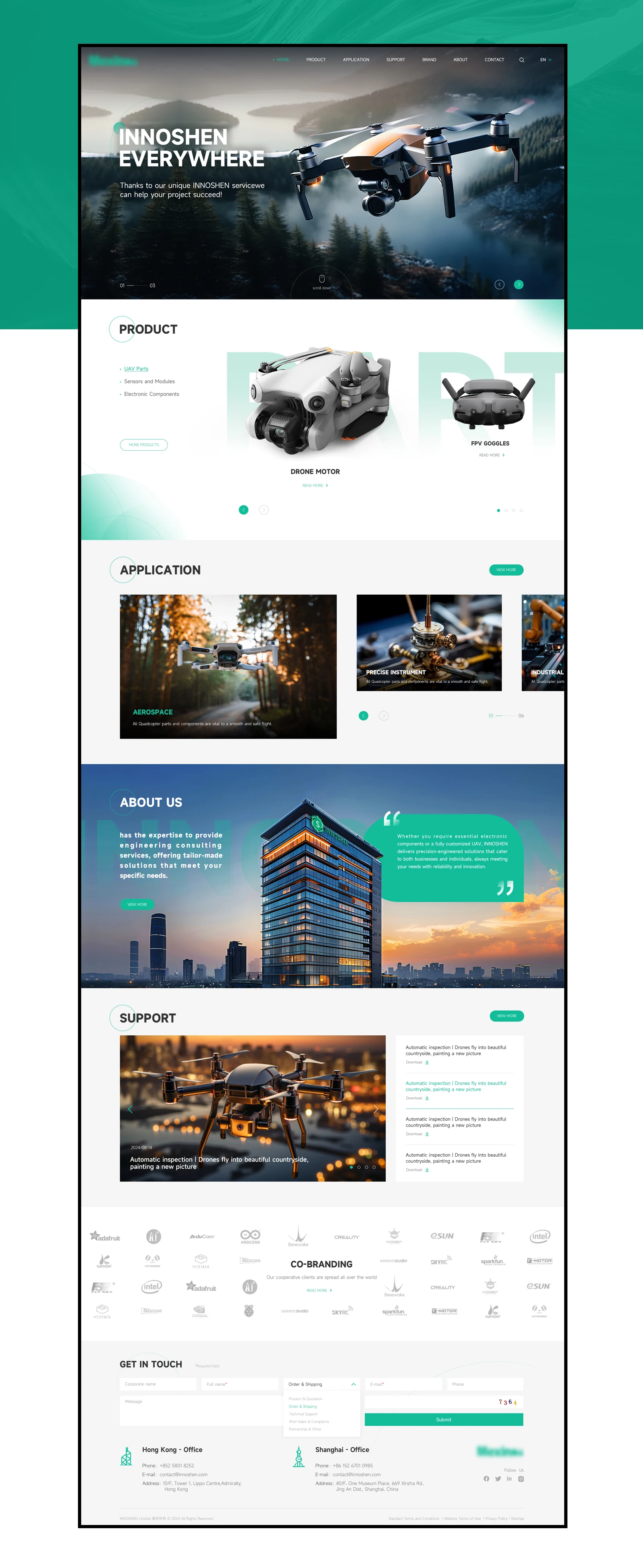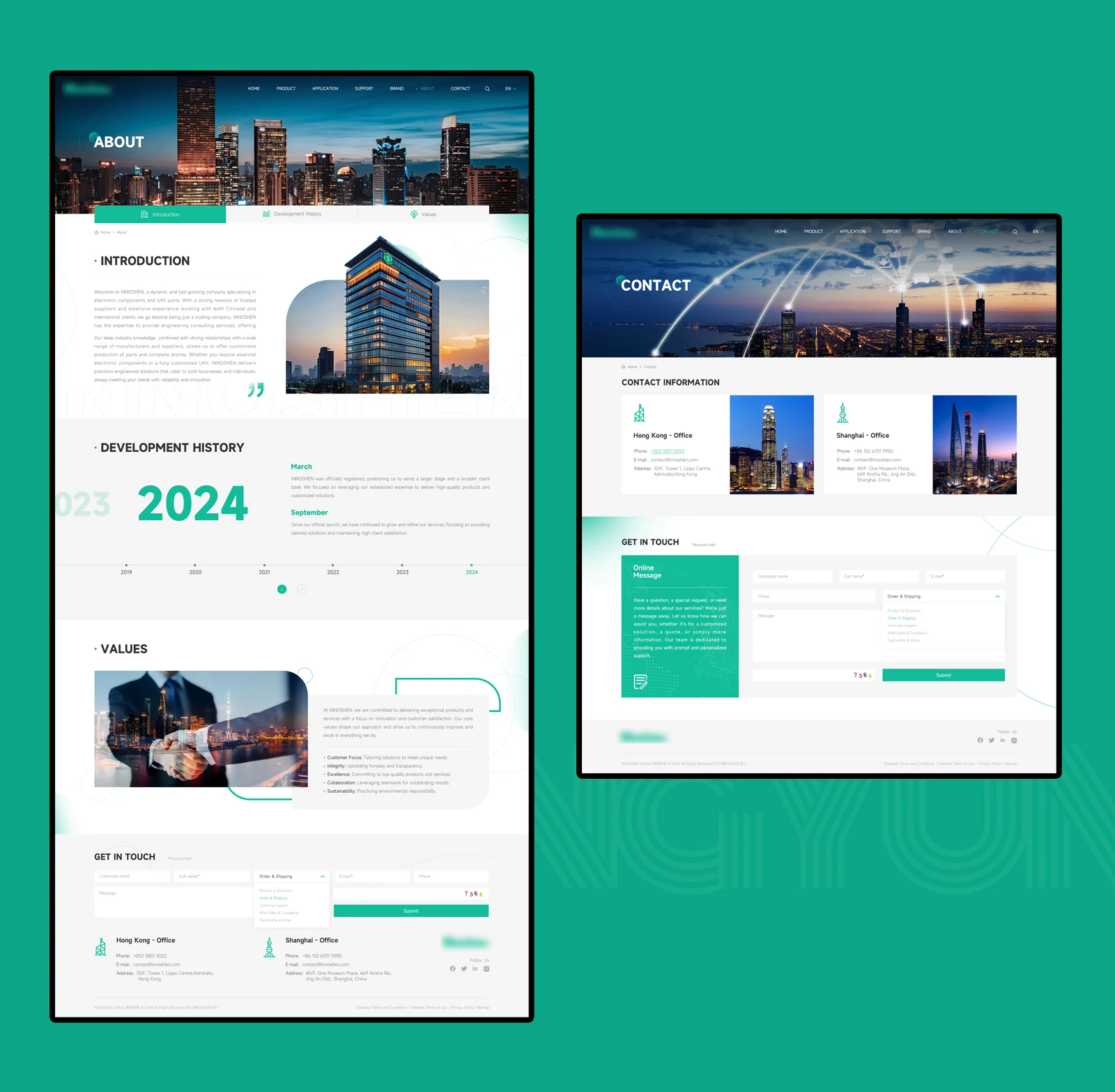 設計理念網站整體配色方面,在使用主VI綠色為主的情況下使用灰色為點綴色,兩種顏色的搭配會產生強烈的對比感突出主體內容的同時,更強化高端與視覺聚焦的效果!