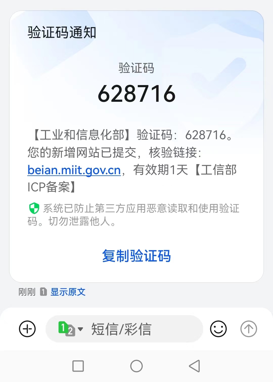 工信部驗證短信發送號碼是什么?